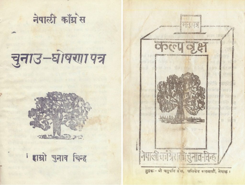 २०१५ सालको निर्वाचनमा नेपाली कांग्रेसको घोषणापत्रको अघिल्लो र अन्तिम आवरण।