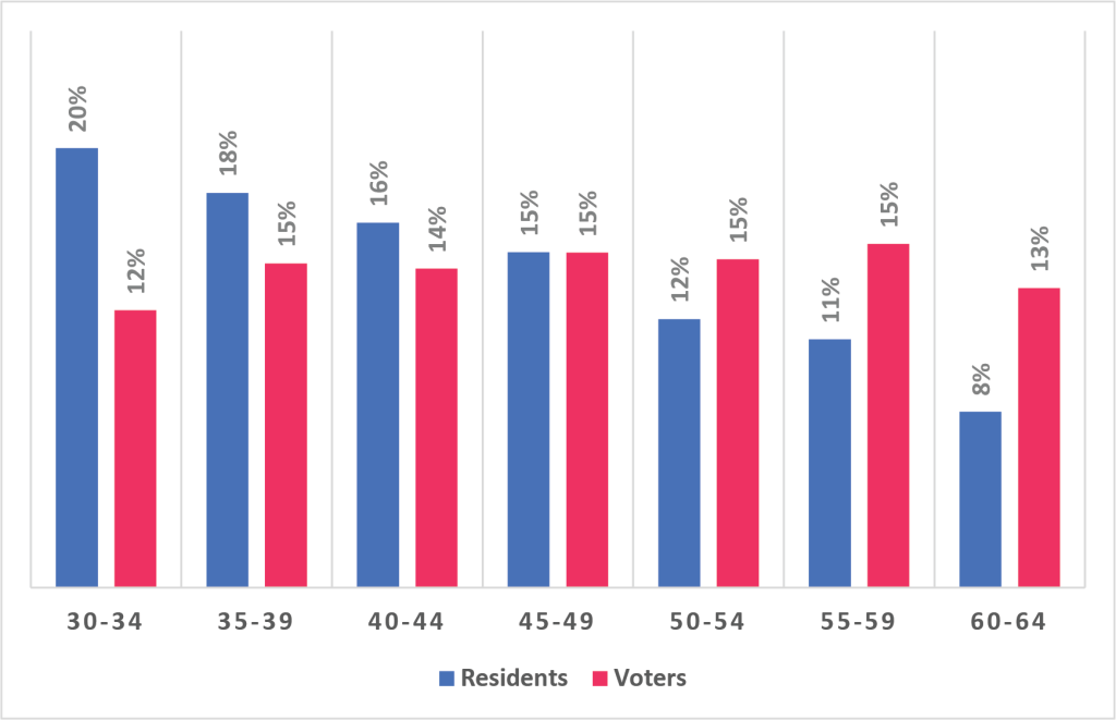 Figure 4b: Divergence in age and ethnic composition between KMC residents and voters